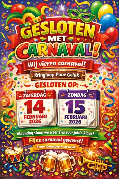 ZATERDAG 14 FEBRUARI GESLOTEN CARNAVAL